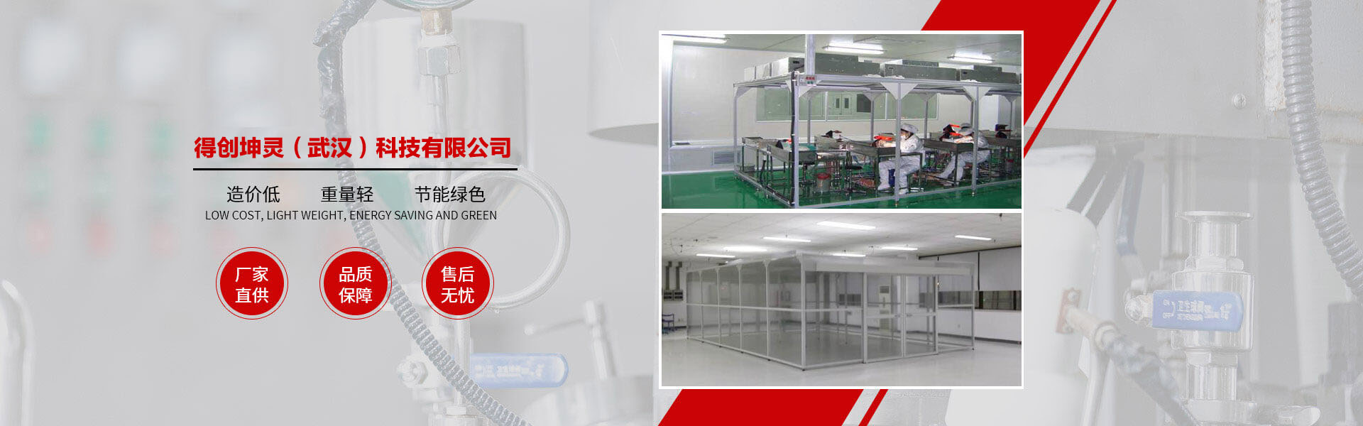 得創(chuàng)坤靈成立于2010年6月,專業(yè)從事食品無菌車間、GMP車間、電子無塵車間、食品醫(yī)藥包裝車間、醫(yī)療器械車間、潔凈棚、土建工程簡(jiǎn)易房、無菌實(shí)驗(yàn)室、組合式空調(diào)機(jī)組等項(xiàng)目的設(shè)計(jì)、裝修、施工、調(diào)試、安裝為一體的凈化工程公司,承接十萬(wàn)級(jí)、萬(wàn)級(jí)、千級(jí)、到百級(jí)的凈化車間、無塵車間、無塵室、潔凈廠房、潔凈室工程的改造與建設(shè)。 作為中國(guó)潔凈室系統(tǒng)工程及設(shè)備制造高品質(zhì)、專業(yè)化的代表,得創(chuàng)秉承“追求完美品質(zhì)、超越客戶期望”的理念,通過對(duì)客戶生產(chǎn)環(huán)境的深入研究及多年的工程實(shí)踐,積累了豐富的潔凈室空調(diào)凈化系統(tǒng)及節(jié)能優(yōu)化設(shè)計(jì)、項(xiàng)目管理及施工經(jīng)驗(yàn),綜合實(shí)力始終處于業(yè)界領(lǐng)先地位。 公司資質(zhì)齊全,包括裝飾裝修工程二級(jí)、機(jī)電安裝二級(jí)、電子與智能化二級(jí)、消防工程二級(jí)、環(huán)保工程二級(jí);擁有多名高級(jí)工程師及暖通設(shè)計(jì)工程師,有著醫(yī)藥凈化工程設(shè)計(jì)、食品無菌食設(shè)計(jì)、電子無塵車間設(shè)計(jì)經(jīng)驗(yàn),長(zhǎng)年與設(shè)計(jì)院有著良好的合作和溝通關(guān)系。公司多年專業(yè)從事凈化工程安裝業(yè)務(wù),擁有數(shù)次在全國(guó)各地有著豐富安裝經(jīng)驗(yàn)的安裝工程隊(duì)伍,在大型管道及彩板安裝方面有著豐富的安裝經(jīng)驗(yàn)和先進(jìn)的現(xiàn)場(chǎng)管理體系。 公司產(chǎn)品廣泛服務(wù)于電子、光電、微電子、光纖光纜、精密機(jī)械、生物制藥、食品飲料、航空航天等眾多領(lǐng)域。我們始終以技術(shù)為中心、以創(chuàng)新為動(dòng)力、以服務(wù)為己任。以一流的產(chǎn)品質(zhì)量,良好的售后服務(wù),參與到激烈的市場(chǎng)競(jìng)爭(zhēng)中來,贏得客戶的支持與信賴。 隨著公司的持續(xù)發(fā)展、隊(duì)伍的日益壯大,公司將一如既往地堅(jiān)持"以客戶為中心"的理念,在激烈的市場(chǎng)競(jìng)爭(zhēng)中迎頭奮進(jìn),以"創(chuàng)一流品牌、建一流企業(yè)"的品牌拓展戰(zhàn)略,面對(duì)機(jī)遇與挑戰(zhàn),開創(chuàng)一片嶄新的天地! 品質(zhì)成就夢(mèng)想、秉承口碑相傳、得創(chuàng)凈化……